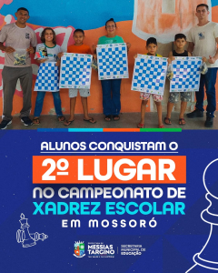Os alunos da Escola Municipal Júlio Benedito brilharam em Mossoró e garantiram o 2º lugar no Campeonato de Xadrez Escolar....