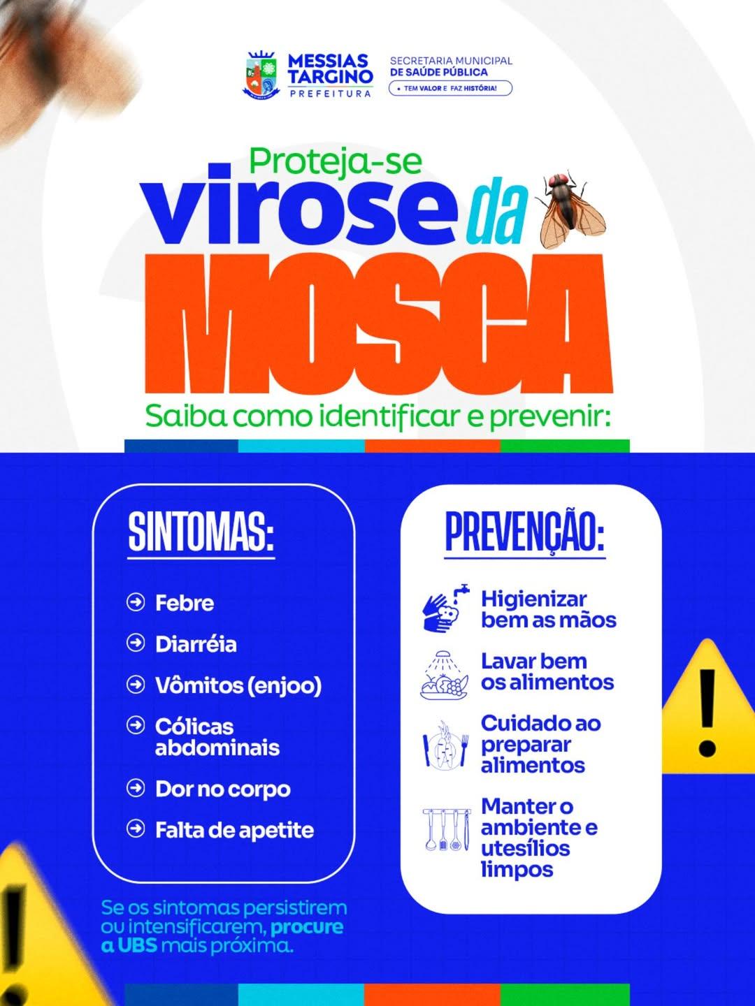 A virose da mosca pode trazer sintomas como febre, diarreia, vômitos e dores no corpo. Por isso, a prevenção é o melhor caminho!