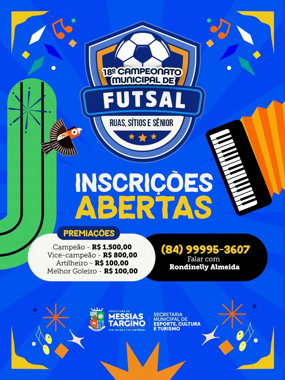 18º Campeonato Municipal de Futsal abre inscrições e promete agitar Messias Targino