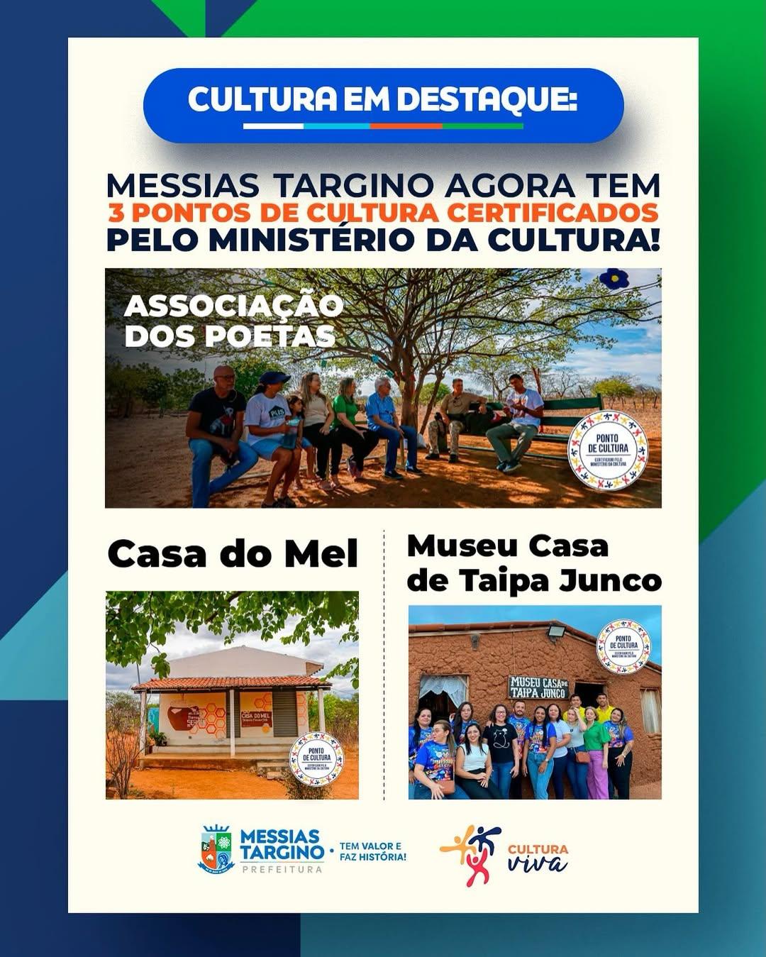 No último dia 22 de setembro, Messias Targino teve mais um motivo para se orgulhar: o Ministério da Cultura certificou 3 pontos de cultura do nosso município!
