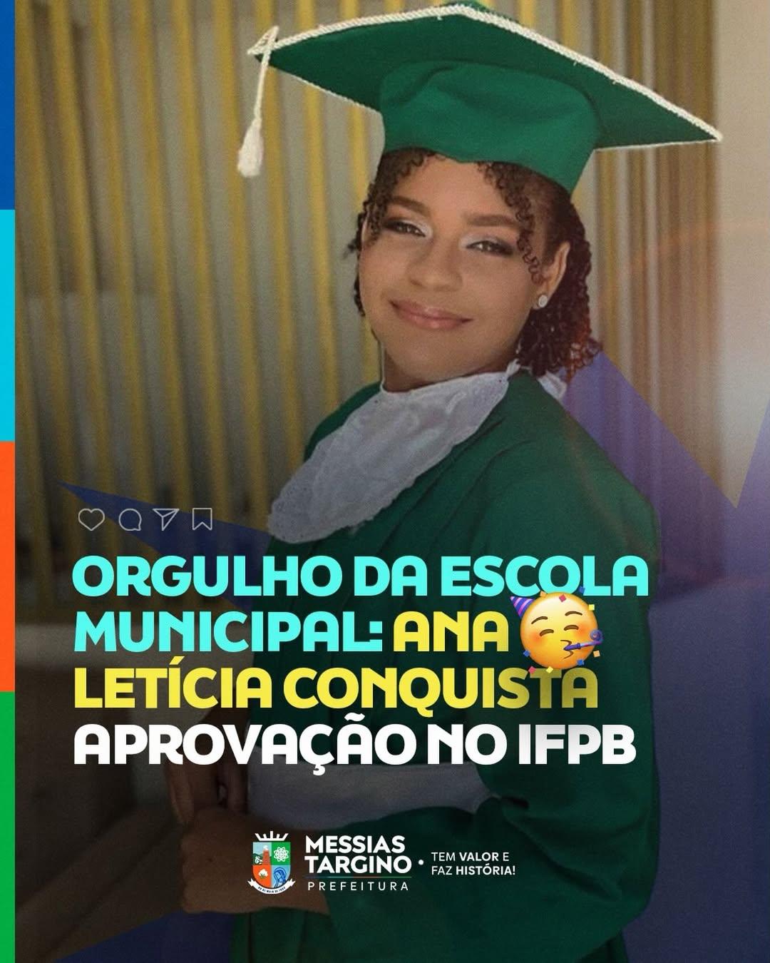 Parabenizamos a aluna Ana Letícia Oliveira, da turma do 9º ano – 2025, da Escola Municipal Professor Júlio Benedito, pela sua aprovação no IFPB!