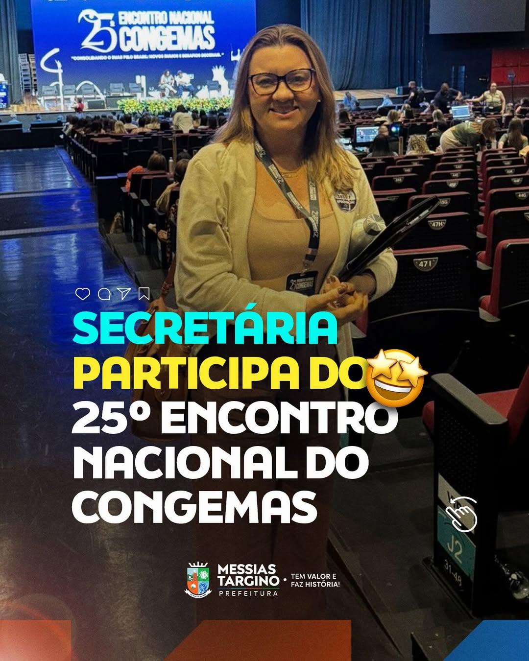 A secretária de Desenvolvimento Social de Messias Targino participa do 25º Encontro Nacional do CONGEMAS, um momento de troca de experiências e fortalecimento das políticas públicas de assistência social em todo o país. 🇧🇷🤝